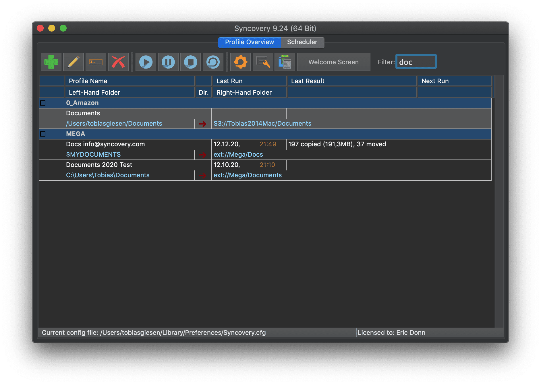 아래 스크린샷에서 볼 수 있듯이 Syncovery는 macOS 다크 모드와 MEGA 클라우드 저장소도 완벽하게 지원합니다: